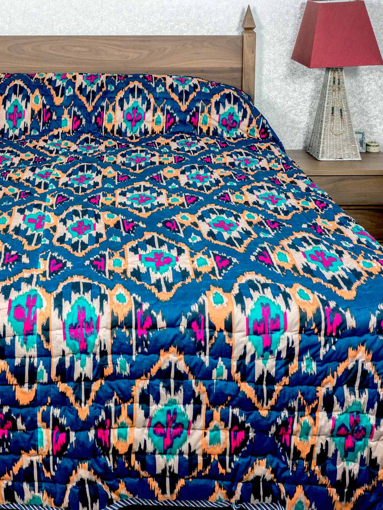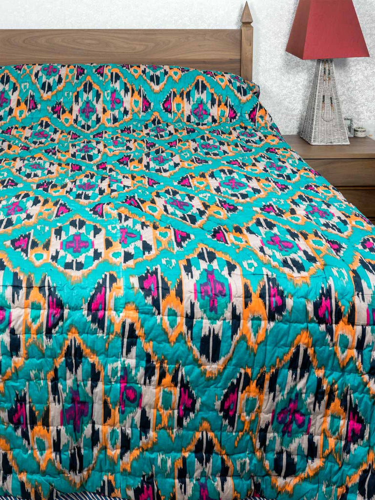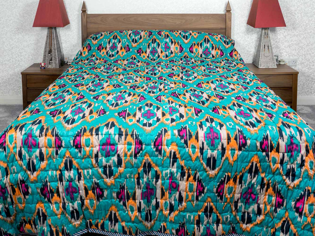 Blue & Turquoise Printed Icat Cotton Quilt